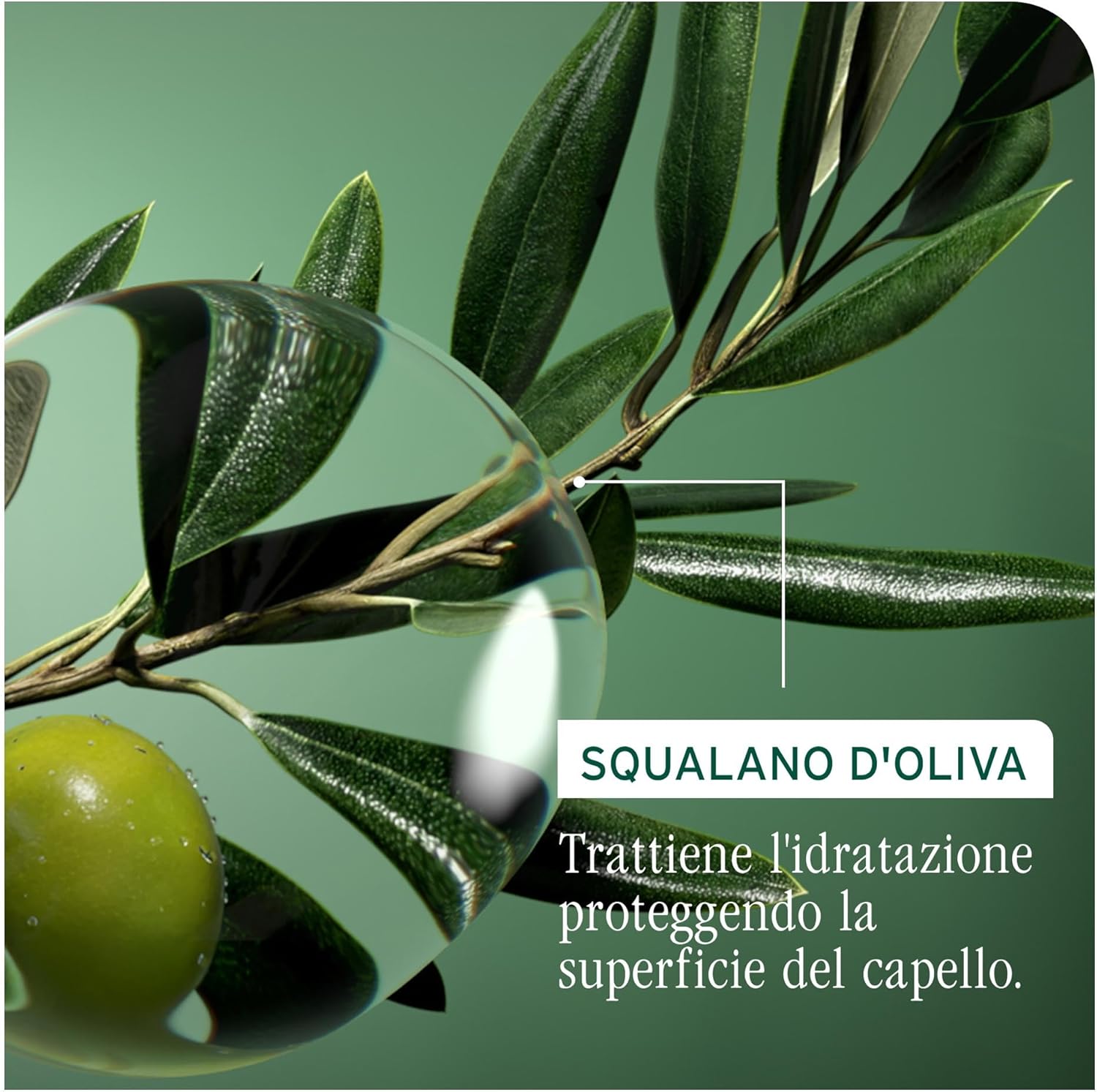 Squalane di Oliva dona morbidezza e condiziona il capello.