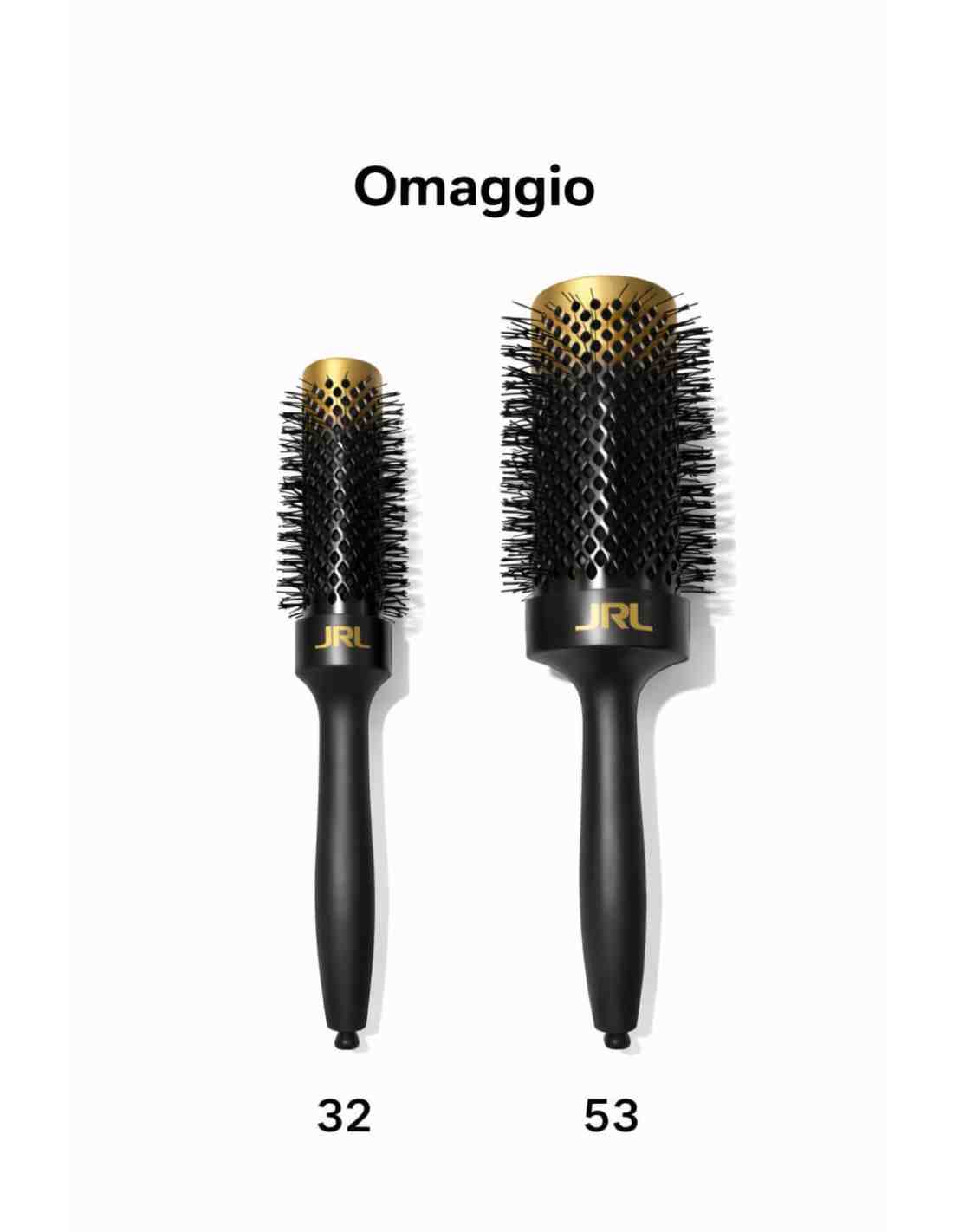 2 spazzole termiche: 32mm per frange, dettagli e ciocche corte; 53mm per volume, onde e pieghe lisce.