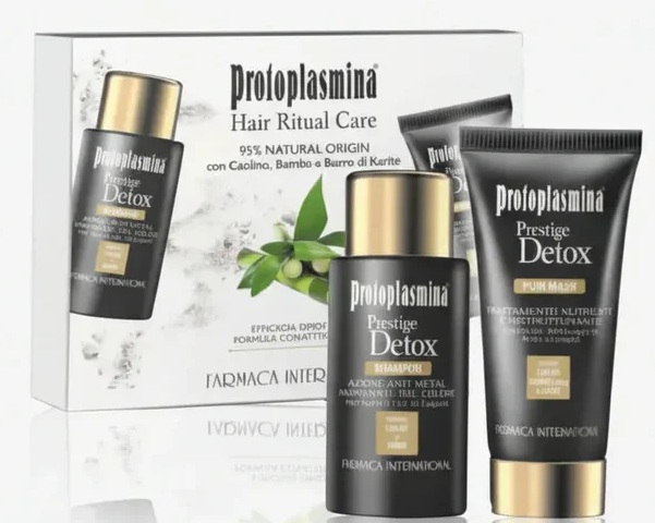 Il Kit Detox di Protoplasmina Prestige è un trattamento chelante in formato travel size che rimuove i metalli pesanti dai capelli colorati.