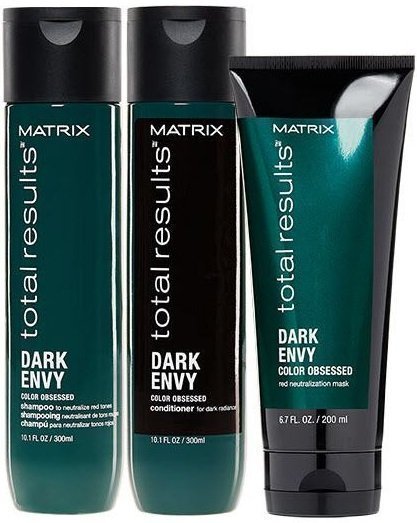 Il kit Matrix Total Results Dark Envy è un detergente studiato appositamente per basi scure. E’ uno shampoo tonificante, una formula verde con un’alta concentrazione di pigmenti che neutralizzano i toni rossi indesiderati ar ...