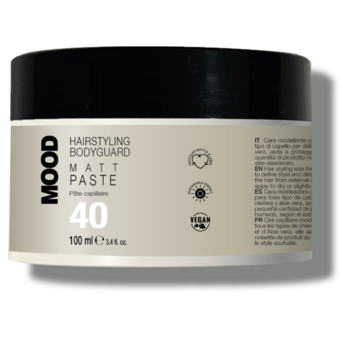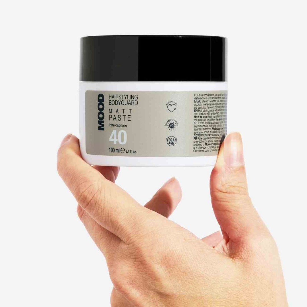 Hairstyling Bodyguard Matte Paste è una pasta modellante a finish opaco, con tenuta da media a forte, pensata per dare struttura, volume e definizione ai capelli senza effetto lucido. È ideale per look matt ben scolpiti, texture “dirty” controllata, ciuffi definiti e styling spettinati ma studiati, perfetta soprattutto su capelli corti e di media lunghezza, sia maschili che femminili. La texture è cremosa ma leggera, facile da lavorare e da distribuire, e lascia i capelli morbidi al tatto, con una tenuta duratura ma flessibile, senza residui visibili.