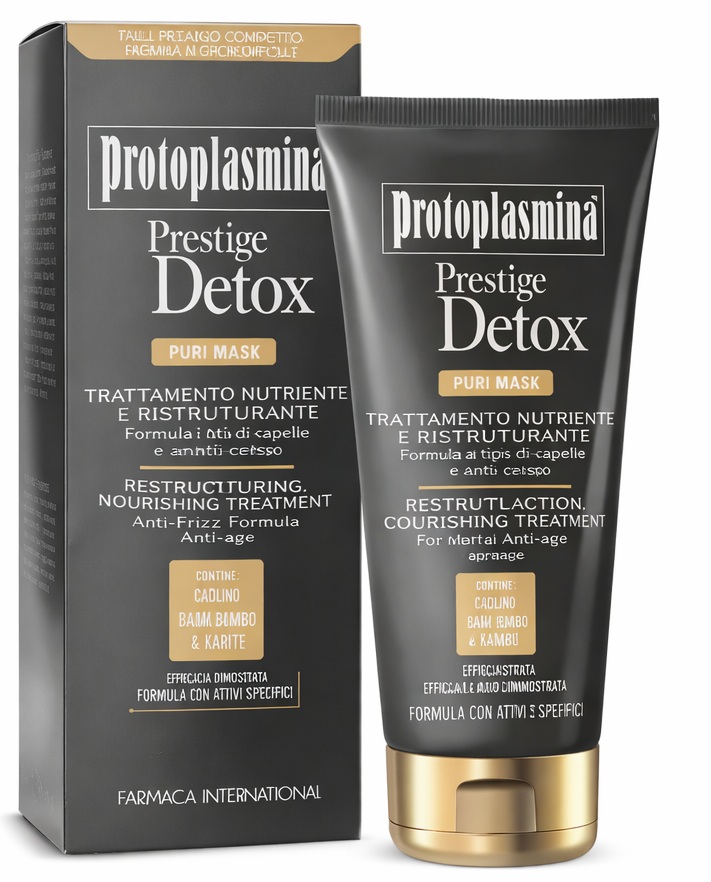 Protoplasmina Puri Mask completa l'azione purificante svolta dallo Shampoo Prestige Detox. Ideale per tutti i tipi di capelli compresi sfibrati, fragili e colorati. Garantisce nutrimento al capello e protezione alle lunghezze ed alle punte.