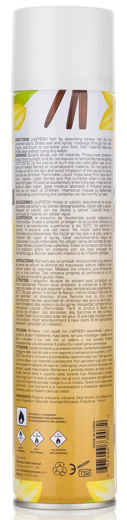 reFRESH dry shampoo è uno shampoo a secco, senza acqua, studiato appositamente per assorbire gli odori indesiderati e il sebo in eccesso dai capelli, in maniera veloce e semplice.