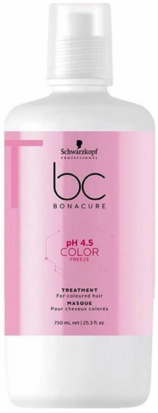 Schwarzkopf Professional BC Bonacure Color Freeze Treatment è un trattamento cremoso intensamente rigenerante per i capelli colorati. Schwarzkopf Professional BC Bonacure pH 4.5 Color Freeze Treatment offre una cura approfondita per i capelli trattati con colore, evidenziati o trattati troppo, riducendo l'effetto crespo e aggiungendo brillantezza brillante. Le cheratine idrolizzate nell'emulsione ricca e nutriente riparano le lacune strutturali nello strato esterno e nella corteccia dei capelli. La tecnologia Cell Perfector sigilla la superficie, conferendo maggiore morbidezza e riducendo la dissolvenza dei colori praticamente a zero. Regolando i capelli al valore di pH ottimale di 4,5, questo trattamento congela i pigmenti di colore in profondità all'interno della fibra capillare, garantendo un colore intenso e vibrante che dura. Speciali filtri UV proteggono i capelli dagli effetti ambientali. L'amminoacido penetra in profondità e ripara la struttura interna dei capelli. Privo di solfato e ammoniaca. Formato da 750ml.