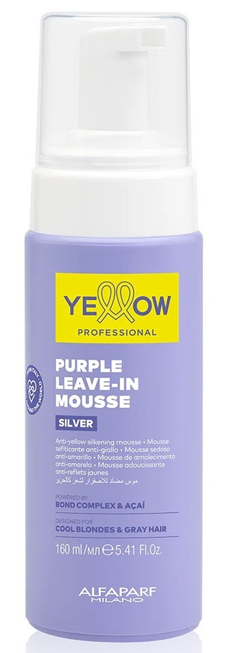 TEXTURE IN MOUSSE: FACILE APPLICAZIONE E RISULTATI IMPECCABILI. Una mousse leave-in neutralizzante anti-giallo e idratante potenziata da Bond Complex, Açaí e Aloetrix, lascia i capelli brillanti, idratati e facilmente pettinabili. Formulata per essere utilizzata dopo Purple Shampoo e Purple Conditioner, per massimizzare l’effetto della neutralizzazione dei riflessi, o per essere utilizzata dopo altri Shampoo e Conditioner Yellow Professional come mantenimento. Formato da 160 ml.